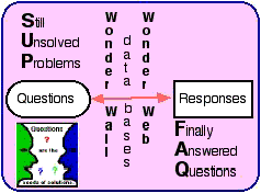 The SUP model responded to the shortcoming of the FAQ design and did so without contributing to email glut. It creates threaded lists that track the question and the responses, taking digital advantage of the wonder wall concept. That is, the SUP system uses online databases to create a wonder web. The concept of SUP, Still Unsolved Problems (Houghton, 1994b), is an electronic database designed to make it easy to create a thread of question and responses and easier to organize teams and build problem solving organizations around the SUP system. SUP represents an online database collection of unanswered questions or questions whose answer is in process. Once a question has been selected by whatever process, a wide range of procedures and resources are available for solving the problem, for seeking an answer. The more team members that are available, the more the task of solving a problem can be broken down into smaller pieces and tackled by different members of the team. The list of individual problem solving tasks can be quite large, yet an overarching set of terms allow the problem solving process to be introduced in four basic steps, LEAP (Houghton, 1993): look, evoke, assess and publish. Working online models have been developed through which different team members can pursue different branches of a question, such as the Problem Solver's Home Page model (Houghton, 1995b). Through the LEAP model, each LEAP segment branches to information age tools available to address that stage of the problem.